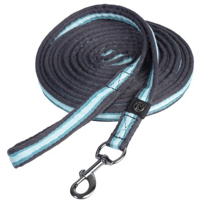 Корда виготовлена з міцного, але еластичного поліестеру для комфортного зчеплення під час роботи. Оснащений вільно обертовим карабінним гаком, який рухається з рухами коня, і петлею на кінці для додаткового зчеплення. Довжина: 8 метрів. Упакована у прозорий мішок для зберігання на блискавці, ідеально підходить для акуратного зберігання та перенесення.