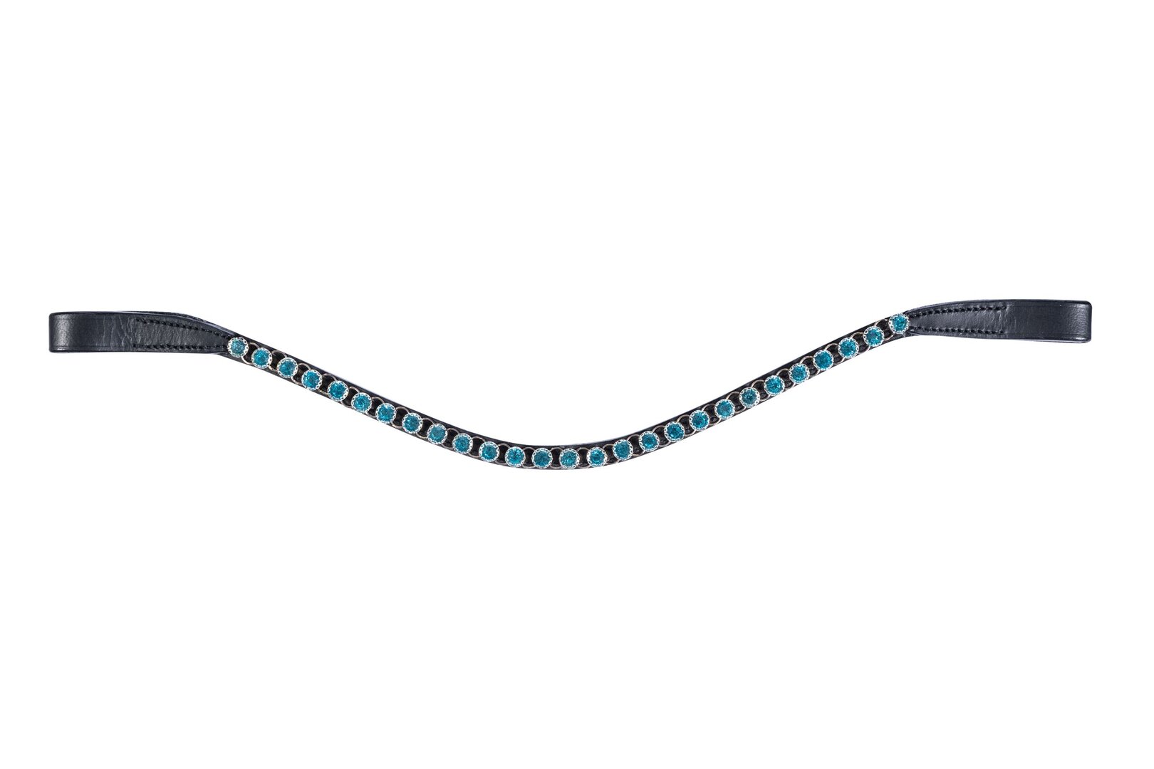 Анатомічний налобний ремінь прикрашений синтетичним камінням блакитного кольору.