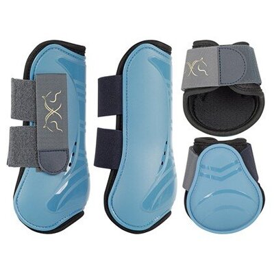 Комплект для захисту ніг, із застібкою-липучкою та м'якою підкладкою. Гнучкий та ударостійкий пластик. Оптимальна амортизація, захист та повітропроникність.