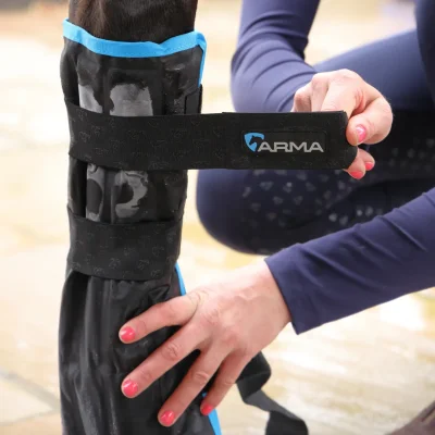 ARMA SubZero Ice Boots використовує кріотерапію льодом, яка зменшує приплив крові до болісної ділянки, допомагаючи прискорити одужання. Корисна в щоденному профілактичному лікуванні, екстремальна холодна терапія після фізичних вправ також корисна для лікування гострої травми; зменшує запальну реакцію та знеболює зменшує біль. Швидкий і простий у використанні і підходить для будь-якої ділянки кінської ноги. Охолодіть черевики в морозильній камері, щоб активувати гель і використовувати негайно або зберігати в прохолодному пакеті, якщо використовуєте його на вулиці. Обгорнуті навколо ураженої ділянки ноги, 32 гелеві подушки в кожному черевику відповідають формі ноги для повного покриття, еластичні ремінці швидкого закриття забезпечують прилягання. Підходить для використання на передніх або задніх ногах.