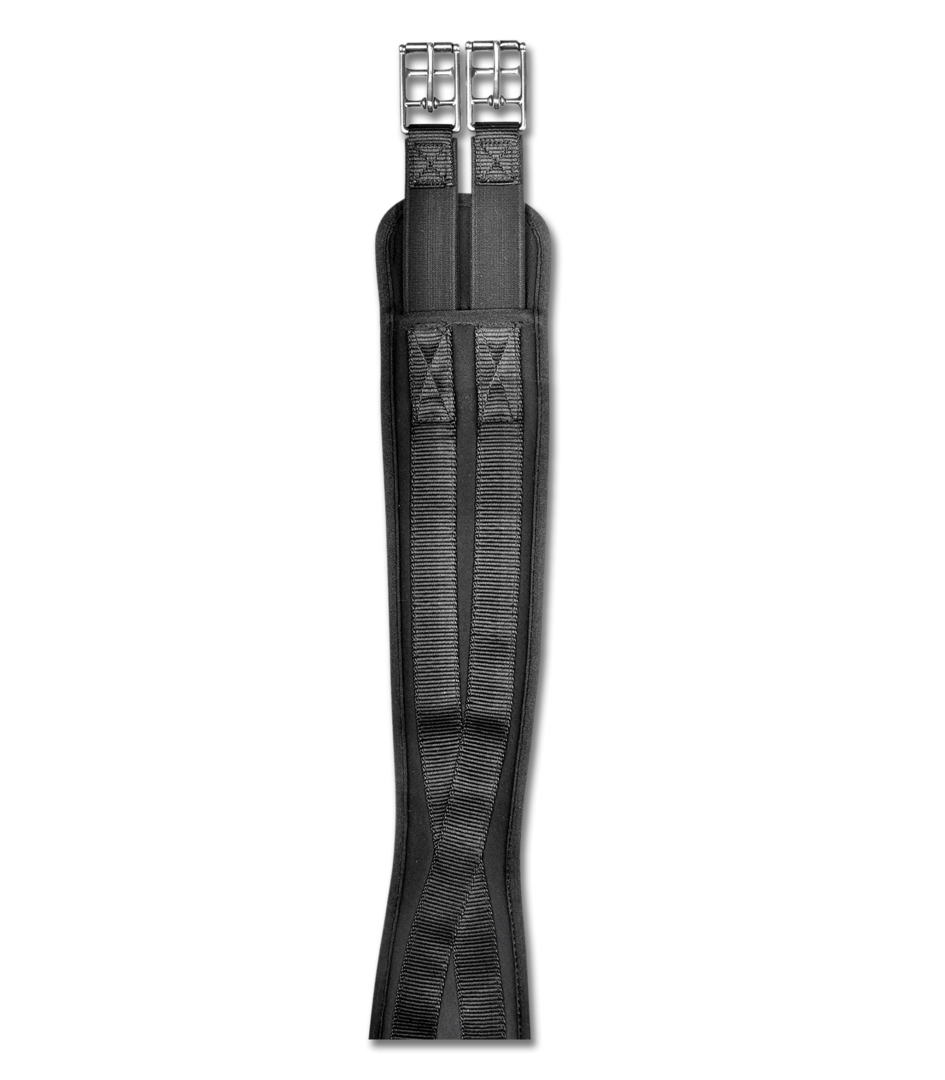 Дуже м'який та товстий матеріал оптимально адаптується до рухів коня, захищаючи його від потертостей та точок тиску. З пряжками з нержавіючої сталі та кільцем для допоміжних поводів посередині. З еластичною вставкою з одного боку.