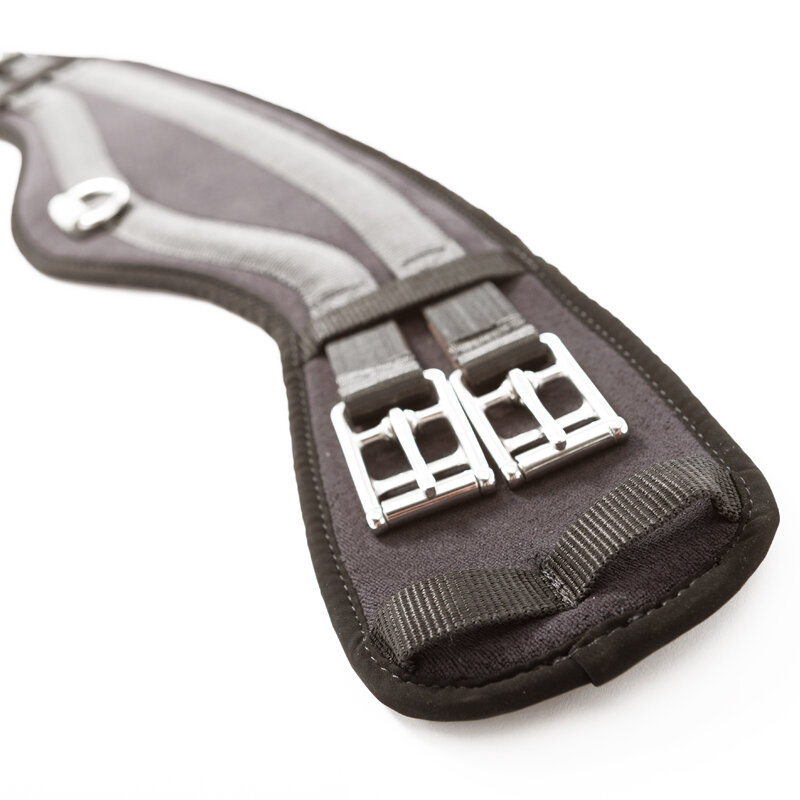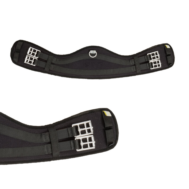 З еластиком з обох боків - ідеально підходить для коней, які дуже вузькі статури спереду, мають коротку спину, через що сідло часто зісковзує вперед. Завдяки спеціальному вирізу у формі півмісяця ремінь забезпечує достатню підтримку сідла. З D-подібним кільцем.
