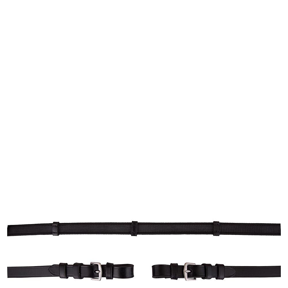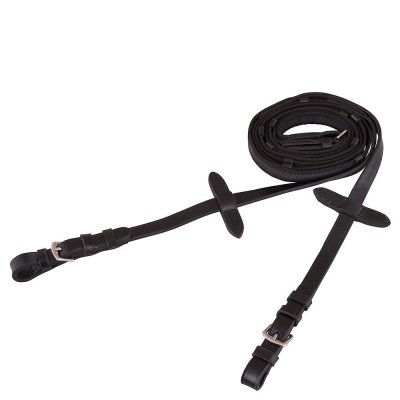 Обгорнутий гумою для кращого зчеплення. Цей нековзний повід (ширина 19 мм) має шкіряні упори. Його шкіряні кінці з пряжкою з нержавіючої сталі мають ширину 16 мм.