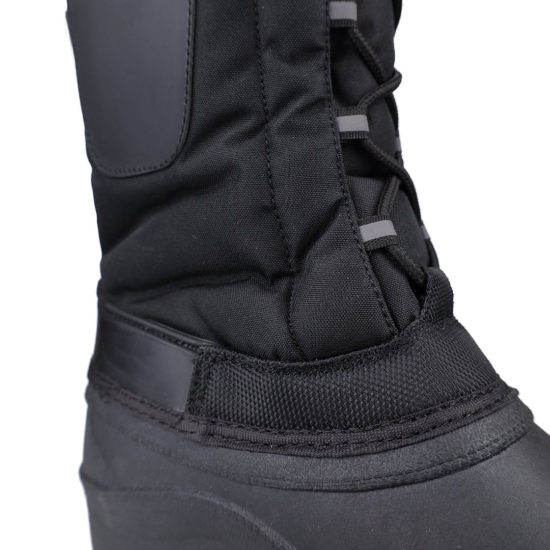 З задньою блискавкою. Водонепроникна властивість черевика поширюється на блискавку, що забезпечує додатковий захист. Шнурування в передній частині дозволяє індивідуально адаптуватися до форми ноги, що забезпечує оптимальну ізоляцію.