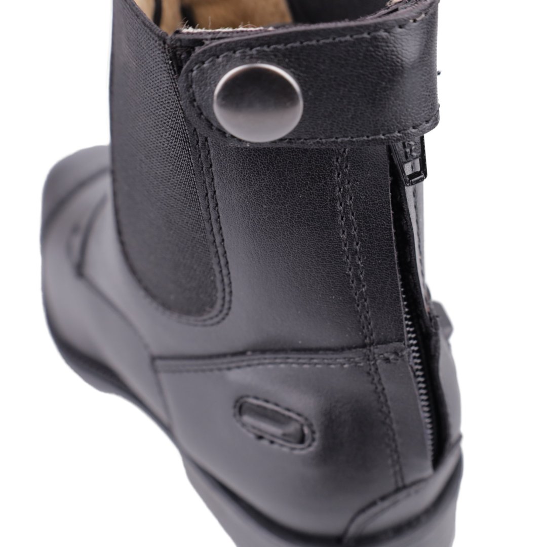 Застежка-молния YKK на задней части ботильона обеспечивает легкое включение и смыкание. Удобная для верховой езды высота пятки обеспечивает надежное удержание в стремени и отличное положение стопы, что облегчает контроль над лошадью и общение через вспомогательные средства.