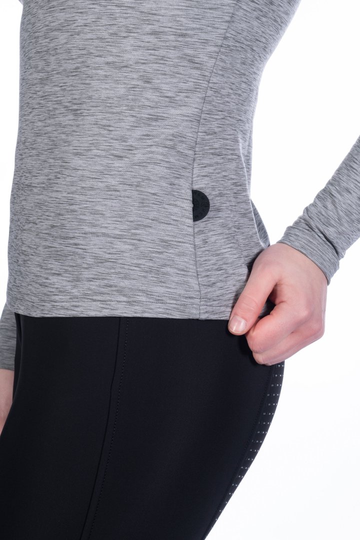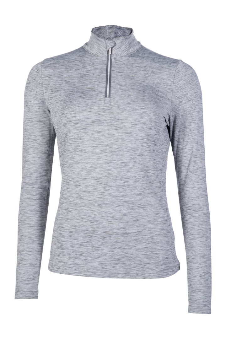 Эластичный материал, короткая молния спереди, воротник-стойкая, наружная ткань в меланжевом виде.