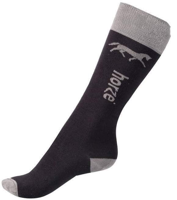 Яркие детские гольфы с ярким логотипом Horze сбоку выглядят спортивно. Дышащие эластичные носки с усиленными носком и пяткой прослужат вам долго. Манжеты завершены изображением бегущей лошади над логотипом.