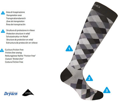 Компрессионный материал плотно и анатомически точно прилегает к щиколотке и икре ног, распределен согласно медицинским стандартам. За счет такого распределения ускоряется кровоток в ногах, лучше работают мышцы, увеличивается доставка кислорода.