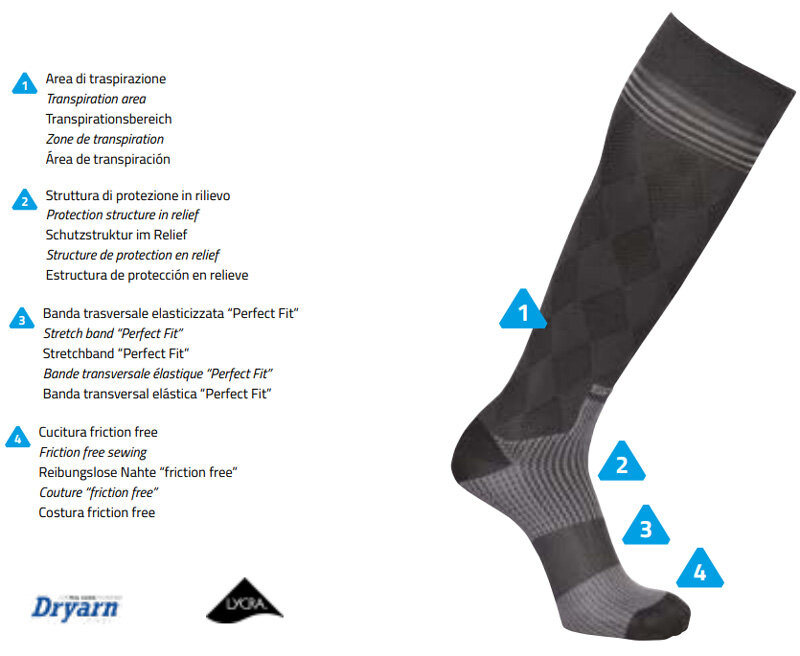 Компрессионный материал плотно и анатомически точно прилегает к щиколотке и икре ног, распределен согласно медицинским стандартам. За счет такого распределения ускоряется кровоток в ногах, лучше работают мышцы, увеличивается доставка кислорода.