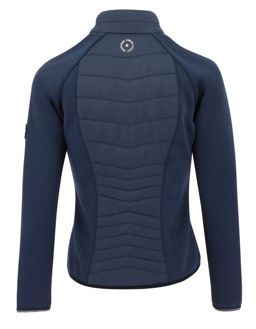 Водоотталкивающая гибридная куртка. Ее можно носить по отдельности или под курткой, и она обеспечит вам весь необходимый комфорт для верховой езды. Подкладка из полиэстерового волокна. Наружные ткани прошли обработку водоотталкивающим средством DWR (прочное водоотталкивающее вещество), контрастные вставки с эластаном. Приталенный крой – карманы на молнии для рук – застежка-молния спереди – эластичные манжеты и концы рукавов. Состав: основной материал: 100% полиамид, контрастный материал: лицевая сторона: 90% полиэстер, 10% эластан, внутренняя сторона: 96% полиэстер, 4% эластан. Можно стирать в стиральной машине при температуре 30°C.
