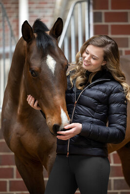 Приталенный фасон. Двухсторонняя молния для езды верхом, 2 передних кармана на молнии. Капюшон не съемный.