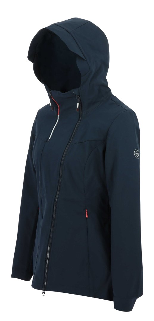 Куртка софтшелл средней длины с капюшоном. Водоотталкивающая и ветронепроницаемая. Ветронепроницаемая. Основной материал защищает от непогоды и прекрасно ветронепроницаем. Приталенный крой и длинный крой. Застежка на молнию спереди. Карманы на молнии для рук. Боковые разрезы.