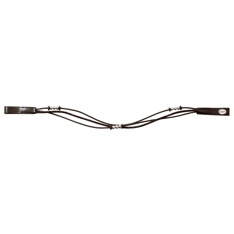 С эффектом браслета - состоит из 3 кожаных шнурков, украшенных серебряными бусинами.