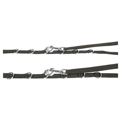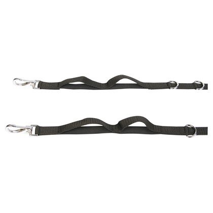 Легко регулируемые боковые поводья благодаря D-образным кольцам, которые можно использовать во время езды, работы на корде или в руках, частично из резинки.