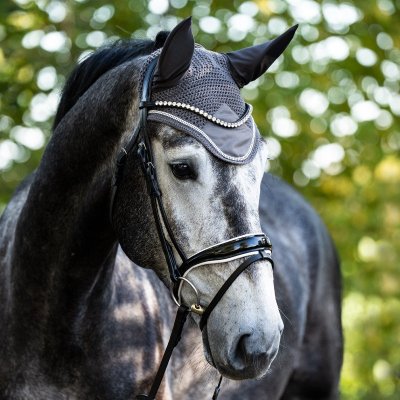 Нежные вязаные ушки, кант щедро украшен декоративными камушками в два ряда.