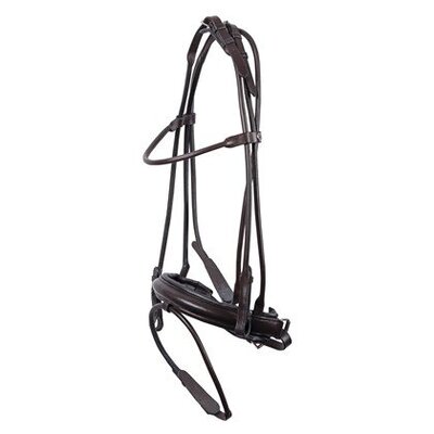 Роскошная прошитая круглыми швами уздечка из высококачественной американской кожи. Оснащена ремешком для носа (4 см) с мягкой подкладкой, пряжками из нержавеющей стали и глухими застежками. В комплект входят поводья с упорами.