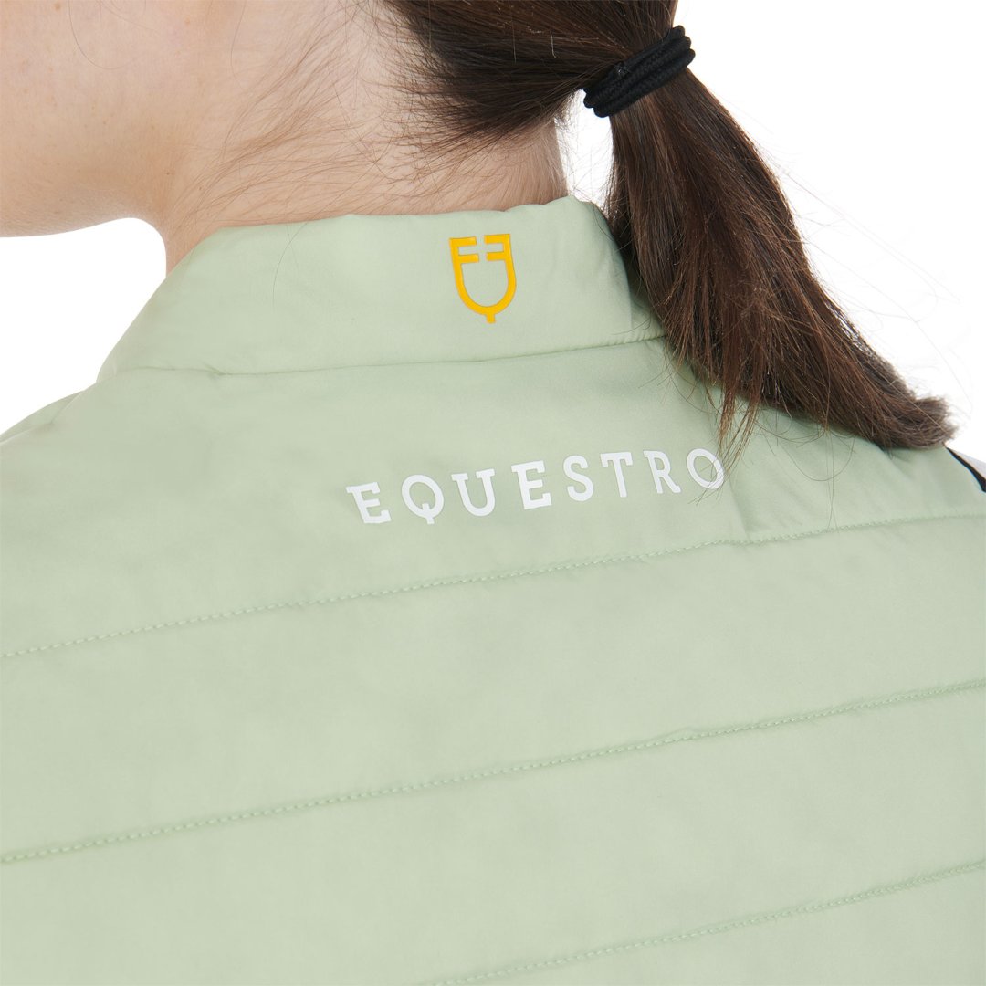 Одежда слегка мягкая, чтобы ее можно было использовать при низких температурах и украшенная застежкой-молнией с ветрозащитной системой, двумя боковыми карманами и надписью Equestro на левой стороне груди.