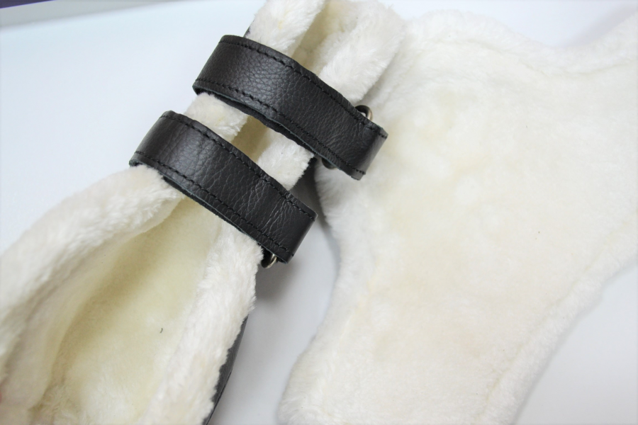 Шкіряні ногавки на липучках з штучним хутром всередині.
