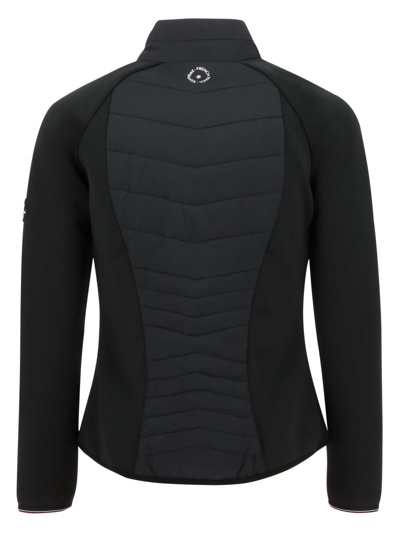 Водовідштовхувальна гібридна куртка. Її можна носити окремо або під курткою, і вона забезпечить вам весь необхідний комфорт для верхової їзди. Підкладка з поліестерового волокна. Зовнішні тканини пройшли обробку водовідштовхувальним засобом DWR (міцна водовідштовхувальна речовина), контрастні вставки з еластаном. Приталений крій - кишені на блискавці для рук - застібка-блискавка спереду - еластичні манжети та кінці рукавів. Склад: основний матеріал: 100% поліамід, контрастний матеріал: лицьова сторона: 90% поліестер, 10% еластан, внутрішня сторона: 96% поліестер, 4% еластан. Можна прати в пральній машині при температурі 30°C.