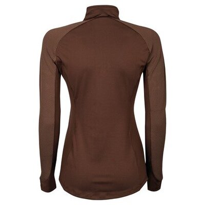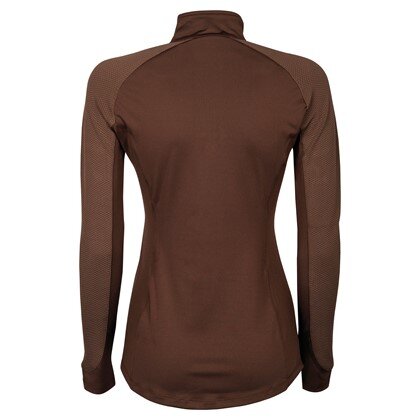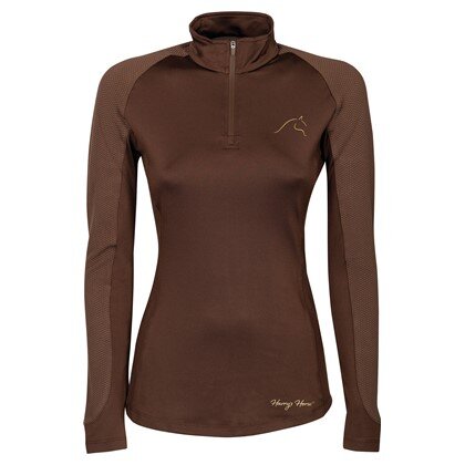 Лонгслів з коміром-стійкою, короткою застібкою-блискавкою та логотипом у вигляді маленької конячки на грудях.