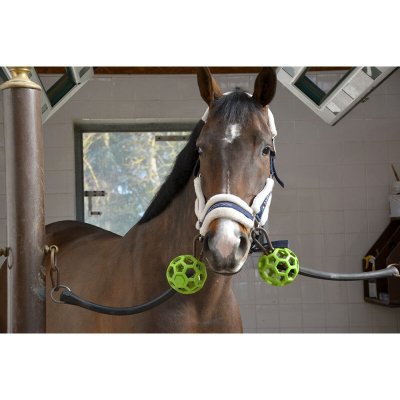 М'яка пластикова захисна кулька для кріплення. Розтягувані отвори для вставки гумки або кріпильного шнурка. Також можна наповнити сіном і повісити в банмані або деннику.