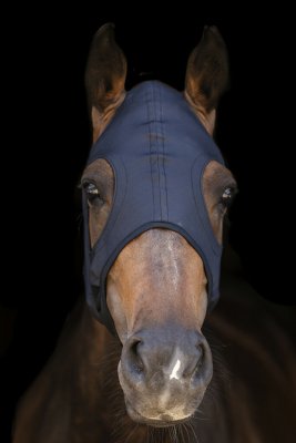 Дихаюча 4-стороння еластична титанова тканина, допомагає зменшити нервозність під час змагань, що природним чином підвищує фокус для підвищення продуктивності. Маску також можна носити в стійлі, загоні та під час транспортування. Ви можете використовувати маску 24/7, якщо це необхідно. Розмір: Full