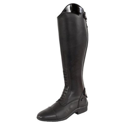 Чоботи Premiere Davidof мають класичний вигляд і виготовлені з високоякісної європейської шкіри, яка довго служить. З трьома включеними змінними топами ви можете регулярно надавати чоботям для верхової їзди дещо інший вигляд: класична шкіра, лакована шкіра або візерунок зі стразами. Ви можете легко приклеїти їх до верху завдяки липучці.