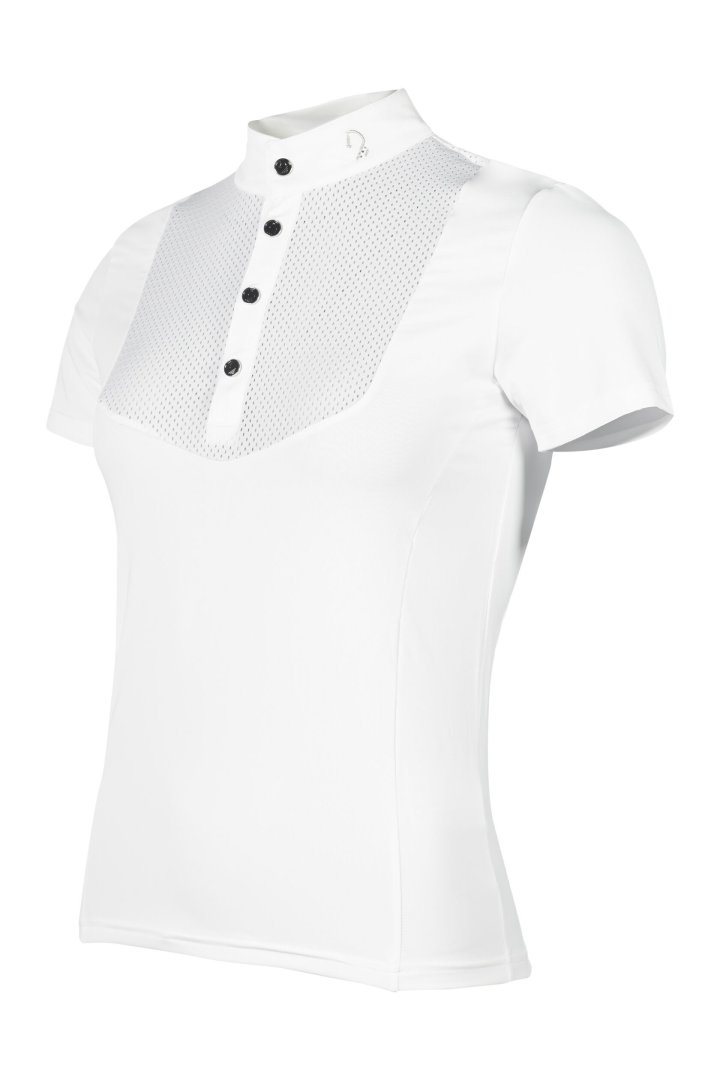 З конкурсною сорочкою Amalfi від Lauria Garrelli ви можете покластися на ексклюзивну якість та елегантний дизайн. Дихаючий, еластичний матеріал забезпечує максимальний комфорт і оптимальну свободу рухів - ідеально підходить для вимогливих шоу-днів. Елегантні деталі на комірі та високоякісна планка на ґудзиках надають сорочці стильний штрих. Стратегічно розташовані сітчасті вставки гарантують відмінну циркуляцію повітря, щоб ви могли підтримувати приємну температуру тіла навіть у теплі дні. Дизайн завершується класичним коміром-стійкою, який створює елегантний силует.