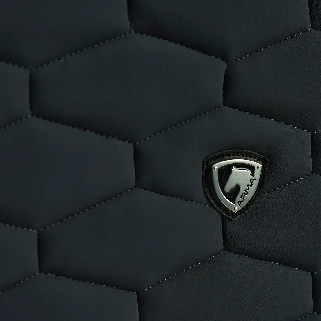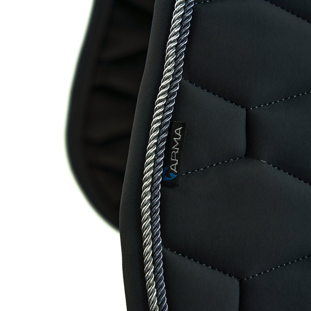 Глибока якість кольору покращується матовим покриттям та крученою подвійною обробкою. Виїздний крій підходить для використання під сідлами прямого крою, контурна форма забезпечує хороший зазор на хребті. Підкладка ULTRA DRI ZONE миттєво відводить піт від коня, щоб зменшити ризик тертя та підвищити комфорт. PU ARMA contour pro girth guard захищає ділянки важкого зносу, жакардова стрічка з логотипом виглядає шикарно на хребті, обхватні петлі та еластичні ремінці D-кільця. Розумний металевий значок ARMA завершує образ.