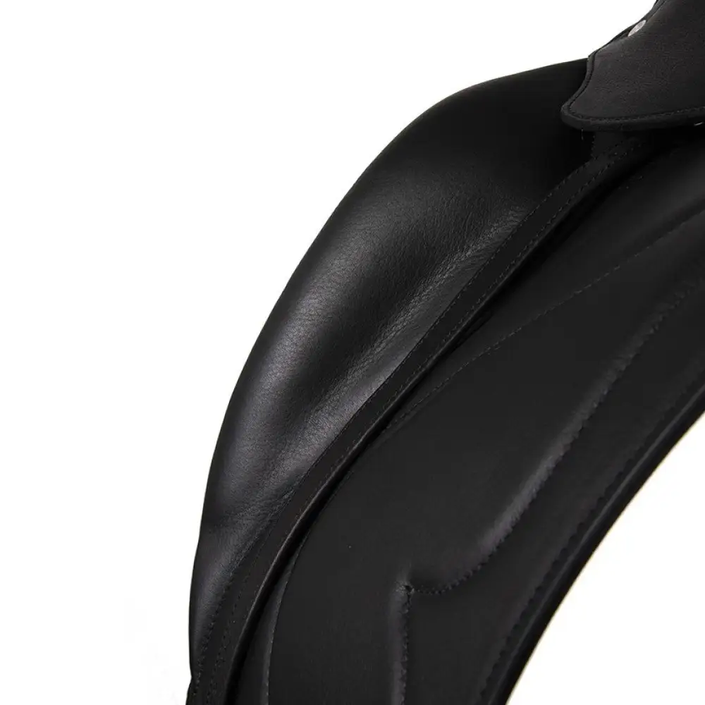 Выездковое седло Cadence от Antares с монокрылом предназначено для обеспечения удобной и естественной посадки всадника, не требуя вертикального положения ноги.