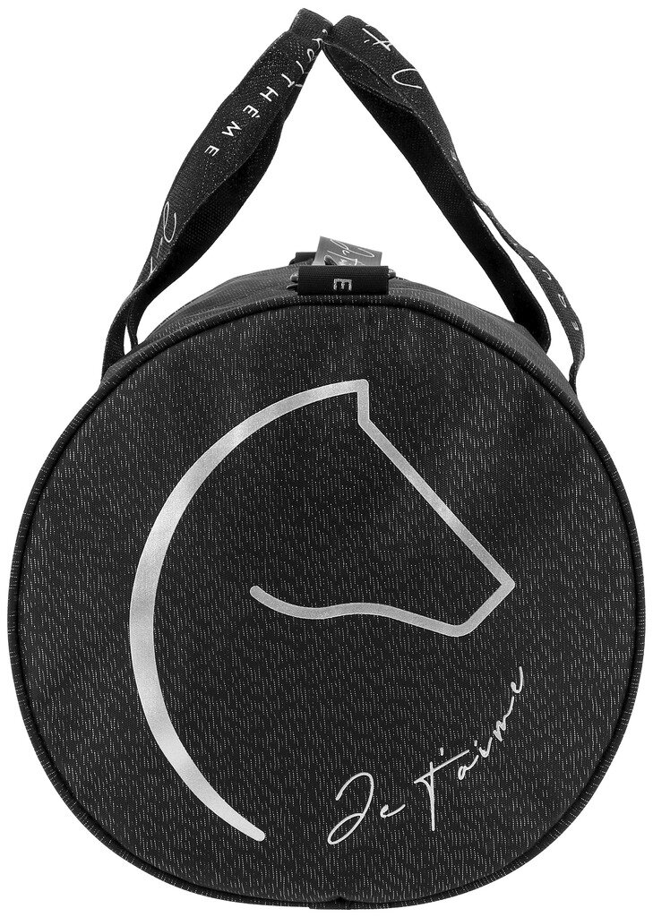 Функциональный и прочный материал: внутренний карман, большие ручки и регулируемый плечевой ремень. Круглый логотип EQUITHÈME со стразами спереди. Ручки и ремешки украшены блестками. Размер: Д 50 х Ш 27,8 х В 27,8 см